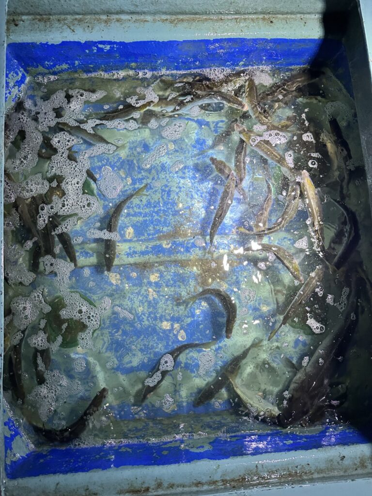 群れで泳いでくるコノシロを網で掬う、まさに漁業体験👍
